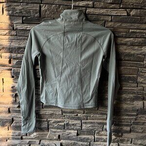 Stylish and functional zip-up crop top with thumb holes – perfect for gym, yoga, or casual wear. Stretchy, form-fitting material with flattering stitching and a cropped fit. Size M. Excellent condition.