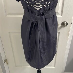Gray Baby Doll Mini Dress Cut Out Floral Design Front & Back 100% Silk Size 6