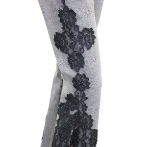 Gray Bootcut Flare Jeans with Black Lace Appliqué Trim 30