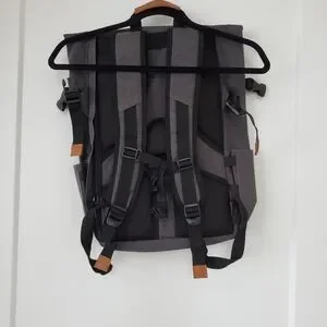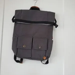 Stylish gray canvas backpack perfect for everyday use. Features multiple pockets for organization.