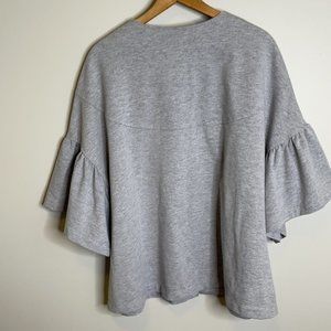 Elevate your wardrobe with this stylish gray cardigan featuring elegant flared sleeves. Perfect for layering and adding a touch of sophistication to any outfit.