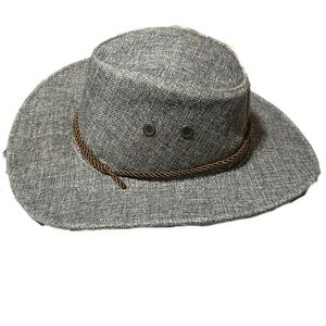 Stylish gray cowboy hat featuring a brown rope detail. Perfect for casual outings. Can be for men or women.