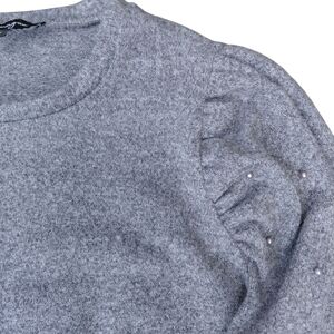 This gray sweater features a classic crew neckline and full-length sleeves, offering a simple yet versatile style. Made from a comfortable knit material, it is perfect for casual wear.