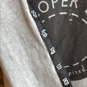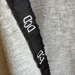 Stylish gray hoodie featuring black logo accents on the sleeves. Perfect for casual wear.