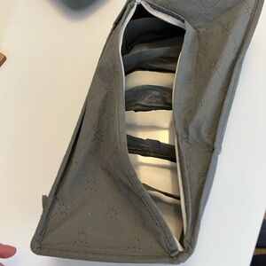 Stylish and functional drawer organizer from Amazon in good condition. Zippered closure at the back as shown, and can fold up for easy travel and storage. Features multiple compartments; perfect for organizing clothes such as bras, underwear and bathing suits.