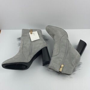 Cape Robbin Bernice Ankle Boots. Women's tag size 9. Light gray / grey with faux fur accent. Side zipper. 4 inch heels.