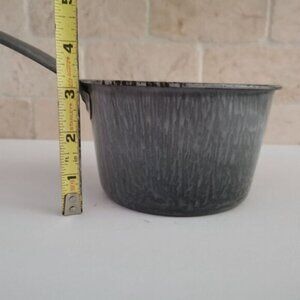 Gray Graniteware Sauce Pan Vintage, Speckled Swirl Enamelware Pot with Handle Ki