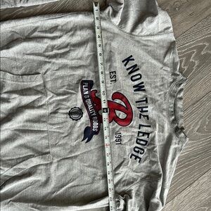 Stylish gray sweatshirt with bold graphic design. Features 'Know the Ledge' text and logo.