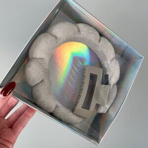 Stylish gray hair clip and braided headband set. Perfect for any occasion.