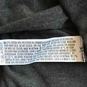 Materials: 57% cotton, 38% polyester, 5% spandex