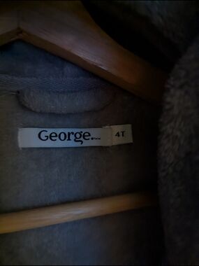 Soft gray kids robe with playful animal ears on the hood. Cozy fleece fabric and a tie waist for a snug fit. Front pockets feature cute animal faces for added fun. Easy-care and perfect for bedtime or after-bath comfort.