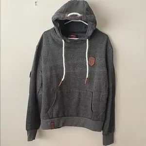 Stay cozy and stylish with this gray hoodie featuring a unique rope drawstring. Perfect for casual outings.