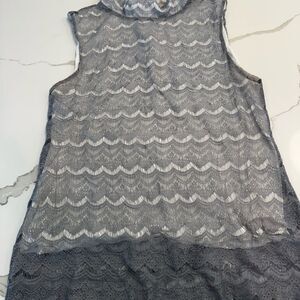 Elegant gray lace sleeveless top. Perfect for layering or wearing alone.