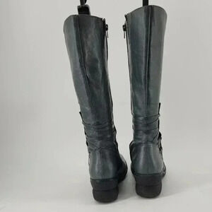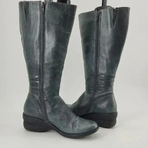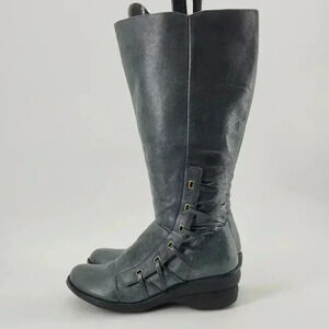Gray Leather Knee-High Boots