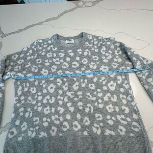Stay cozy and stylish with this gray leopard print sweater. Perfect for any casual outing.
