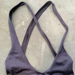 Gray Metallic American Apparel High Thigh Cut One Piece Swim suit Bikini Swim