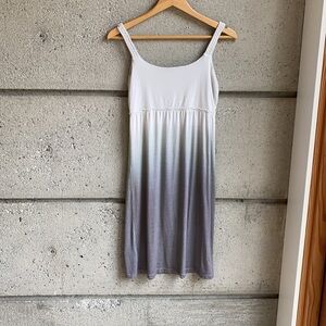 Cute little braided strap jersey slip on dress previously worn by me. Took this once on a vacation with me and wore it a handful of times. Sadly I’m no longer a small. Loved the gradient on it and flattering bust lien with bra friendly straps. Wore it casually with sandals and then even dressed it up one night for a nice beachside dinner out. One small mark pointed at in pic 8 from far away (for location) and 9 in detail. Priced to account for the mark and general wash and laundering.