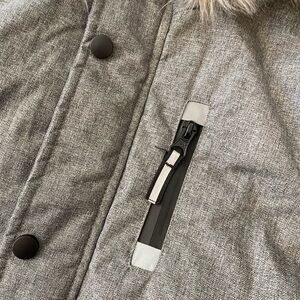 Practically new! Whomever buys this adorable parka will be so happy with it. I live on a tiny island on the West Coast and we don’t get nearly enough snow to warrant a jacket this warm. That being said I think my son wore this once, maybe twice. Only thing to note would be the name written inside on the name tag space. I loved how cozy it was lined with lumberjack plaid, reflective details like the maple leaf at the back, and the cozy cuffs. Please feel free to request measurements you may need or send questions you have before purchasing.