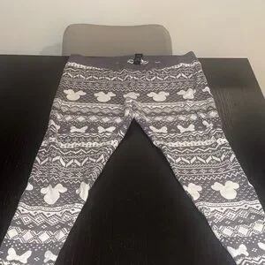 These stylish gray knit leggings with a Mickey Mouse fair isle pattern are cozy, warm and comfy.