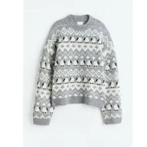 Stylish crewneck sweater with geometric patterns. Soft and comfortable. Ideal for casual wear. Size small from H and M in good used condition