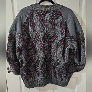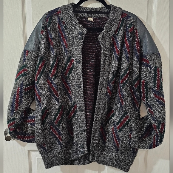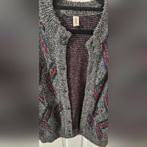 Stay cozy and stylish with this gray patterned women's sweater. Featuring a unique design with hints of red, green, and blue, this sweater is perfect for any casual outing.
