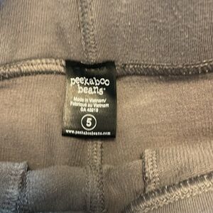 Gray Peekaboo Beans Shorts size 5. Comfortable and stylish gray shorts perfect for active kids. Easy to wear with a drawstring for a secure fit. And they have pockets!