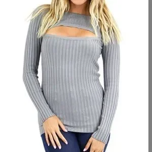 Gray cutout top. Brand new condition and never worn. It has lots of stretch so it can easily fit up to a medium/large.