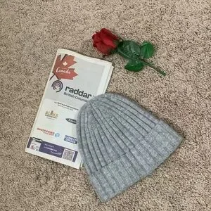 Stylish gray ribbed knit beanie. Perfect for cold weather.