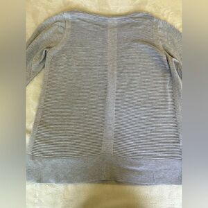 Cozy gray striped sweater with long sleeves. Perfect for casual wear.