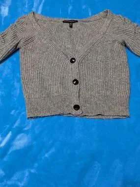 🤍 Gray Ribbed V-Neck Cropped Cardigan 🤍
