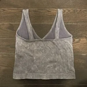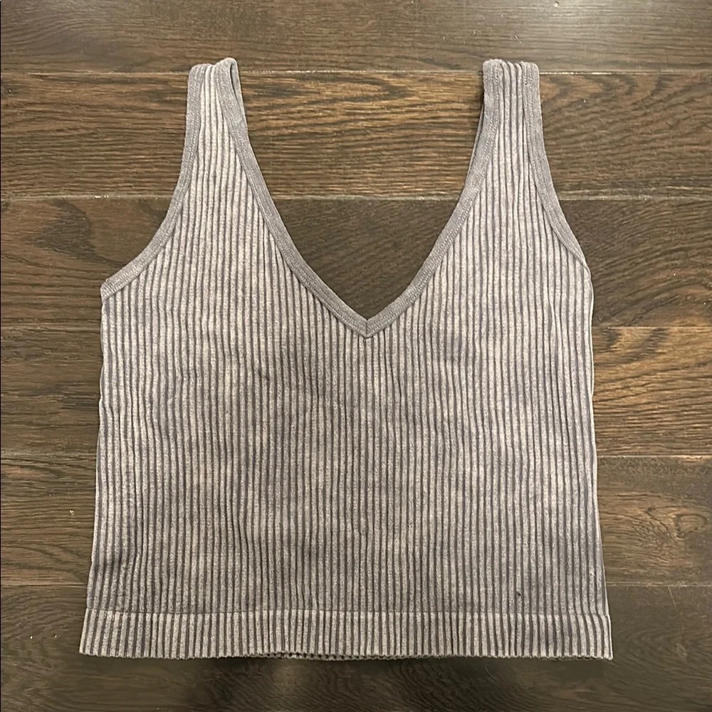 Elevate your style with this chic gray ribbed V-neck tank top. Perfect for any occasion, this versatile piece offers comfort and elegance.