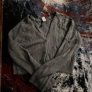 Stay cozy and stylish with this gray ribbed sweater. Perfect for layering or wearing on its own.