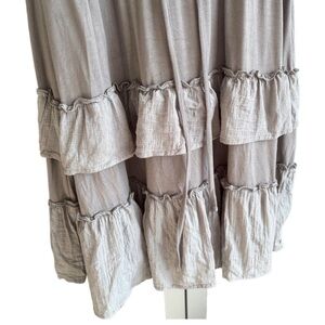 Stylish, soft gray mini dress with ruffle details. Perfect for casual outings.