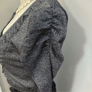 Gray Sequin Ruched Puff Sleeve Blouse fit (S/M)
