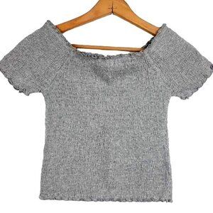 Gray/Grey Smocked Off Shoulder Elasticized Top w/ Black "bonus" Leggings (throwing these in to complete the look)!