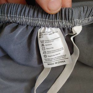 Gray Sofa cushion with straps for couch legs. Sized small, should fit most small sofa couches. Has an elastic wrap around. Machine washable. 92% Polyester and 8% Spandex