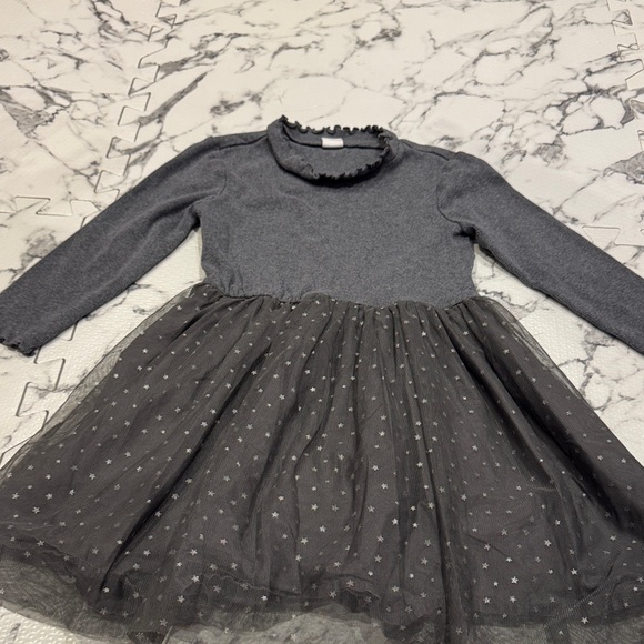Charming gray kids dress with a starry tulle skirt. Perfect for special occasions or everyday wear.