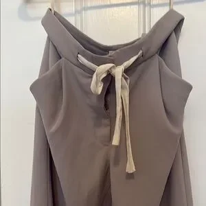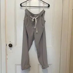 Gray trouser pants with drawstring waist. Light weight and comfortable. Minimal wear.