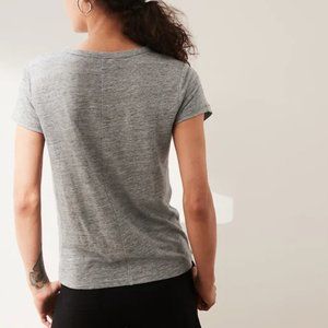 Elevate your wardrobe with this stylish gray V-neck top. Perfect for any occasion, this top offers both comfort and elegance.