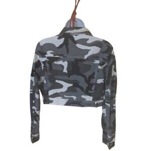 Gray White Cropped Camo Print Denim Jacket Size Medium