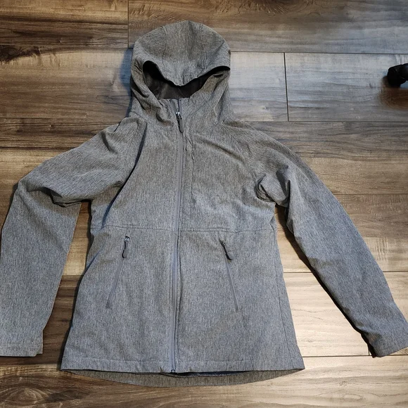Stylish gray Spring hooded jacket with front zipper. very soft lining