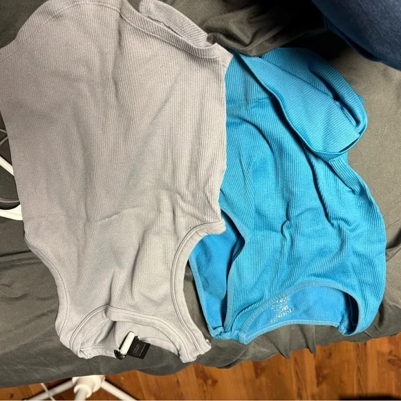 Gray and Blue Ribbed Tank Tops