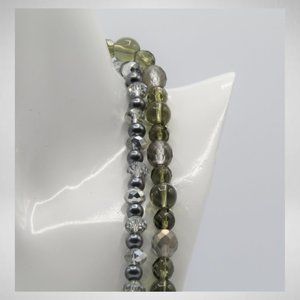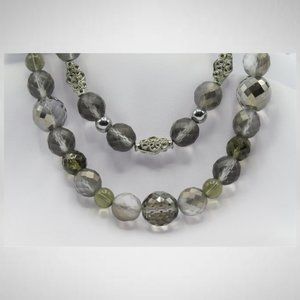 A NEW and HANDMADE sophisticated gray and silver jewelry set. ncludes necklace, bracelet and earrings. Each piece is hand-made and designed by me. I only make one of a kind. I use a wide variety of beads from crystals, glass, metals and semi-precious stones all to create unique and stunning pieces.