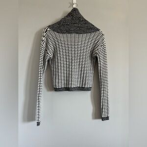 Stay cozy and stylish with this chic gray and white hooded sweater. Perfect for layering and adding a touch of elegance to your wardrobe.