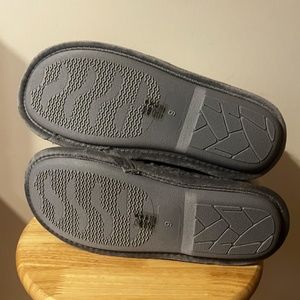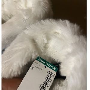 Gray and white boucle and faux fur plush bootie slippers new with tags. Incredibly fluffy, soft and warm, plush boucle texture and faux-fur upper, padded footbed, embossed non-skid rubber outer sole. Marked size US 9. This item comes from a smoke free, pets friendly home. Recycled bags/box used when possible. Please, let me know if you'd like any additional pictures and/or measurements or other info. Thanks for looking!