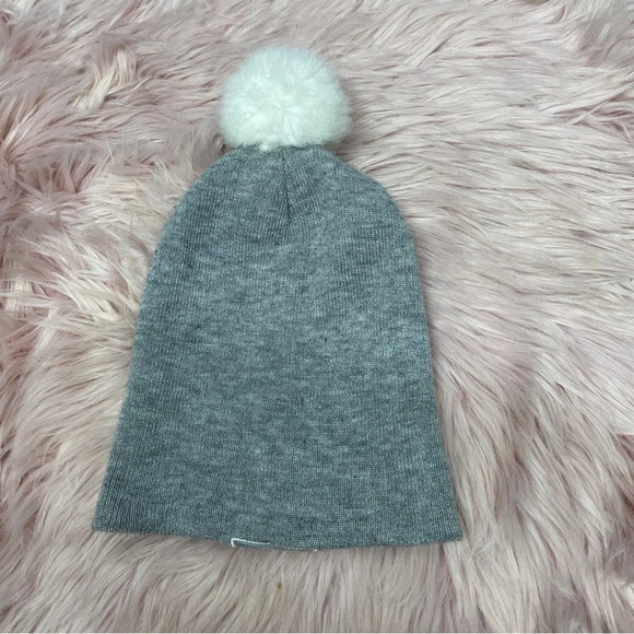 O/S fit all folded up knitted grey with white pompom tuque/beanie the Barbie logo is stitched in and there’s the official Mattel Barbie tag on the Inside this was pre owned but in good condition