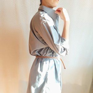 Gray industrial long sleeve shirt/vintage/ loose fit/ button closure/ two chest pockets/ button sleeves/ military epaulette/ 65% polyester 35% cotton/ made in Canada/ in perfect condition