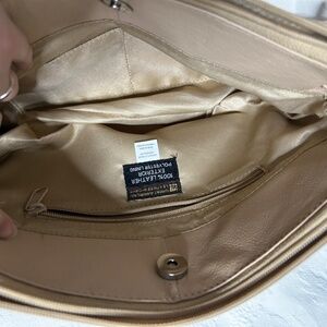Great American Soft Tan Leather 3 Pocket Purse snap close and adjustable straps