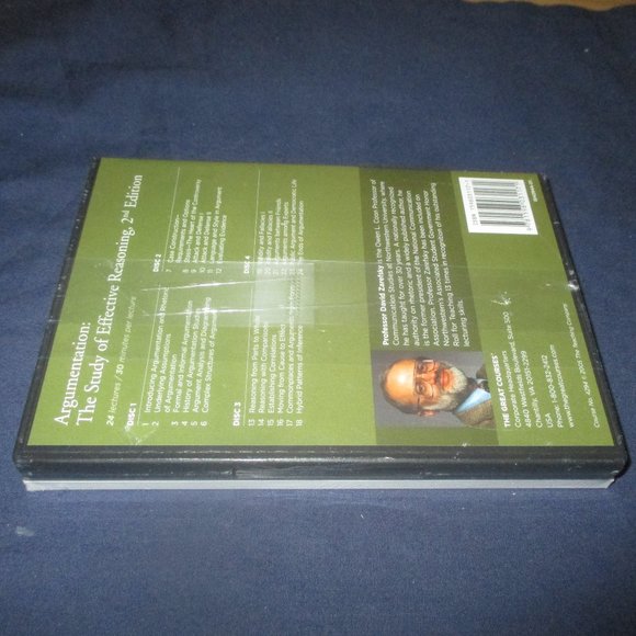 This is one of the dvd series of courses: The Great Courses: Argumentation: The Study of Effective Reasoning 2nd Edition which is unopened and in great condition with no noticeable damage to the seal. It is sold as is.