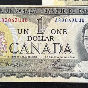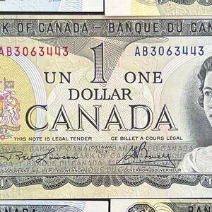 Spectacular Sequential Serial Number Set of Canada 5 x 1973 $1 Bills! This rare collection of five sequential serial numbered1973 Canadian one-dollar bills are a must-have for any currency enthusiast or collector. With a country/region of manufacture in Canada, these bills showcase the rich history and heritage of the Canadian currency. Perfect for display or adding to your collection, these bills are a unique piece of Canadian monetary history from the Bank of Canada. Don't miss the chance to own this exceptional set of vintage Canadian bills from 1973.